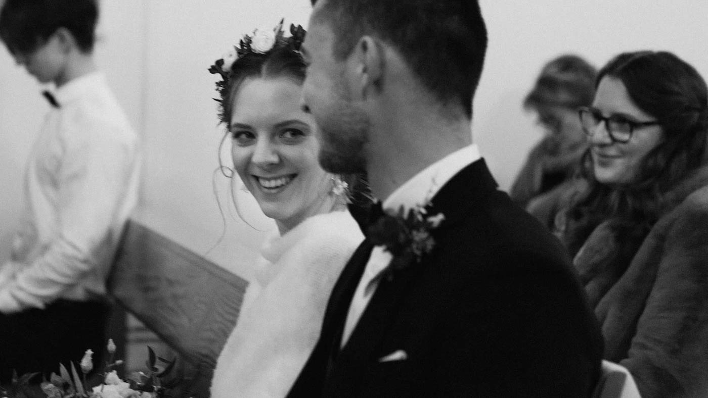 Zosia i Kacper brali ślub zimą, tuż przed sylwestrem. Ta pora roku sprzyja intymnej atmosferze. Już przed uroczystością na dworze zaczęło robić się ciemno. Wprowadziło to niesamowitą atmosferę, która pasowała do kameralnej uroczystości.
